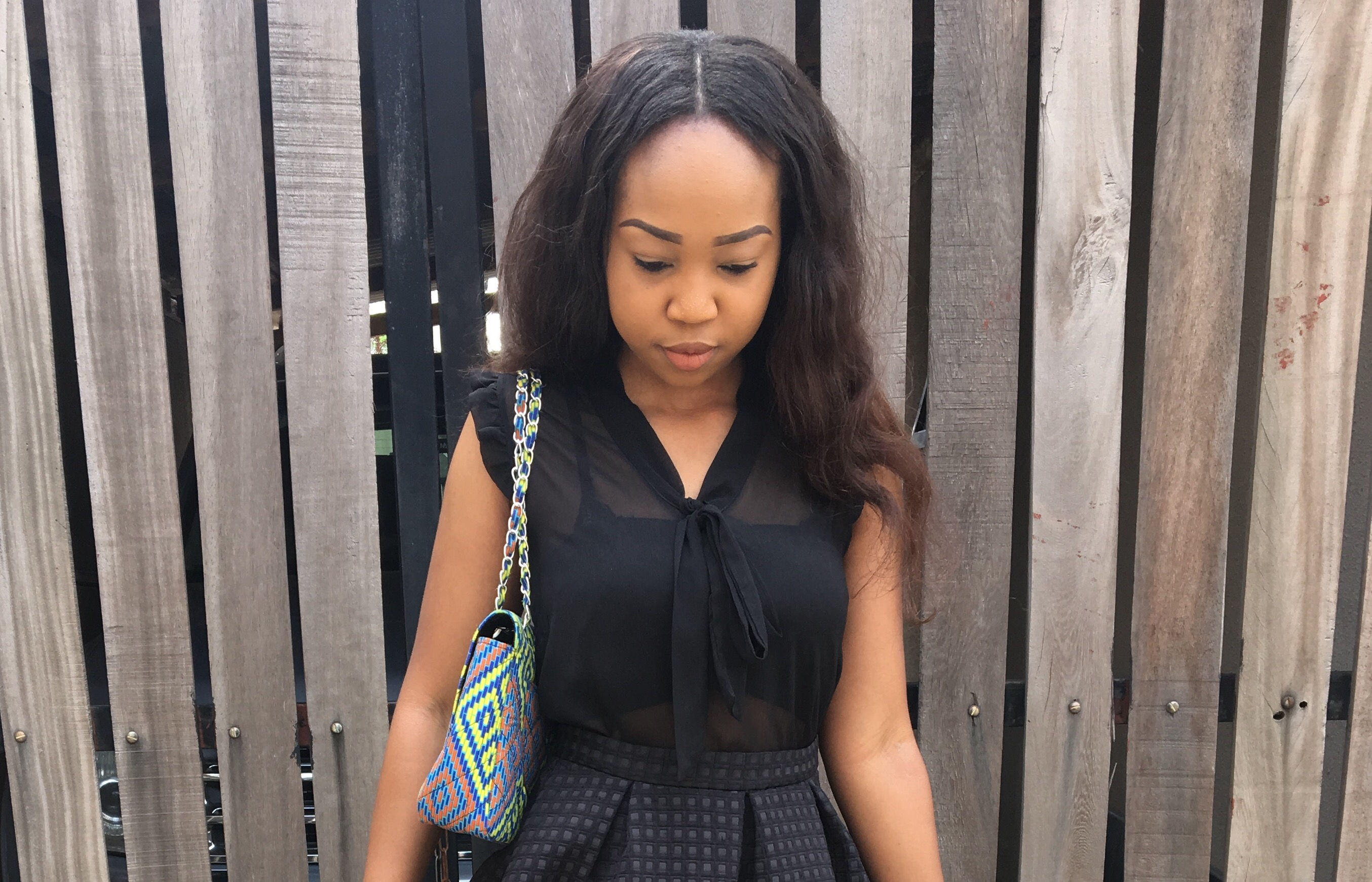 This blouse is the perfect black work chic blouse and I’ve actually paired it with this skater skirt to work before but I had a cami on underneath.