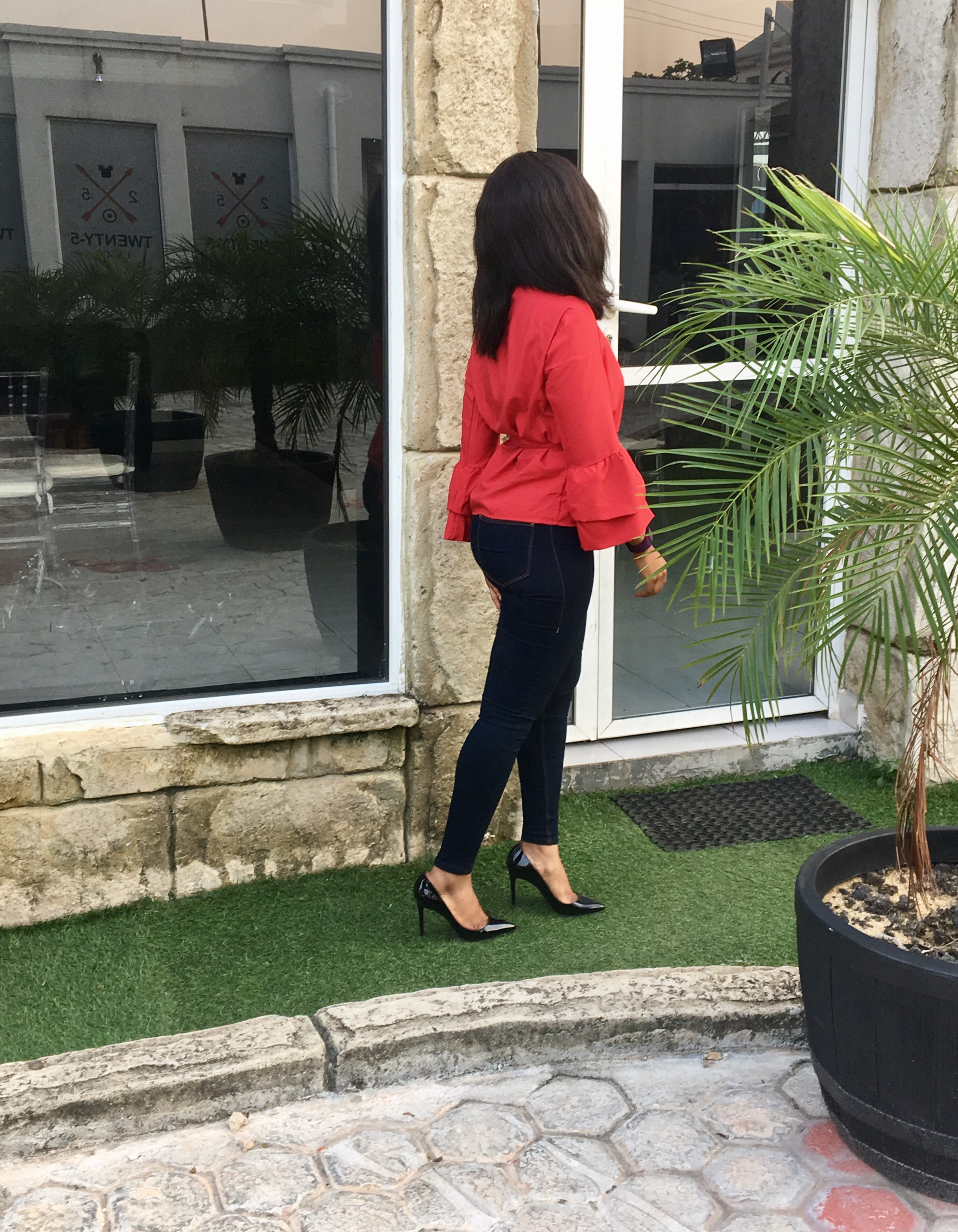 I came across this blouse online in February/March but I started admiring it in May. Ruffle is a trend that has come to stay as everything ruffle is back in vogue. Ruffle tops even in monostrap, ruffle skirts, ruffle shoes, ruffle slippers, ruffle dresses you name it.