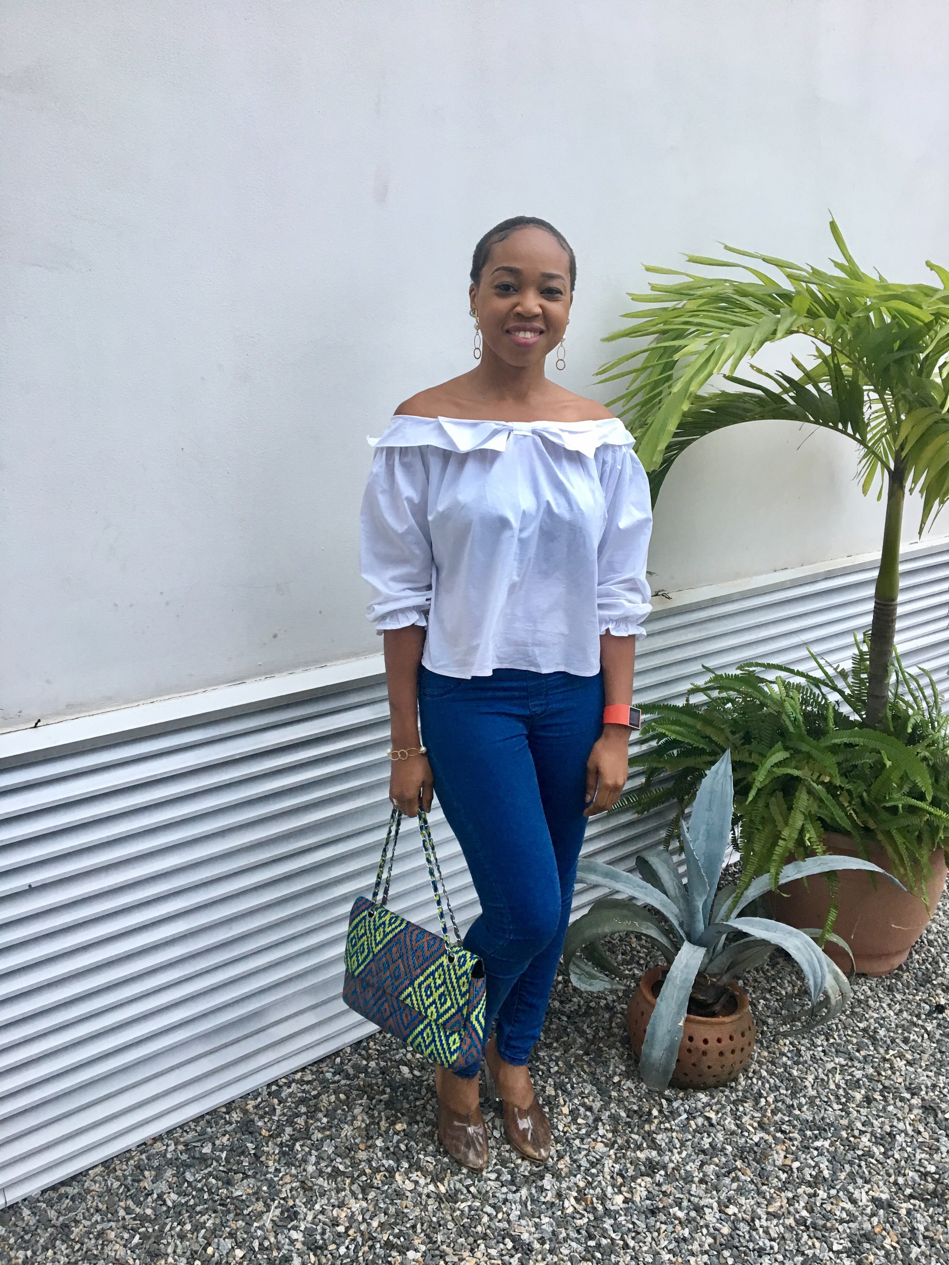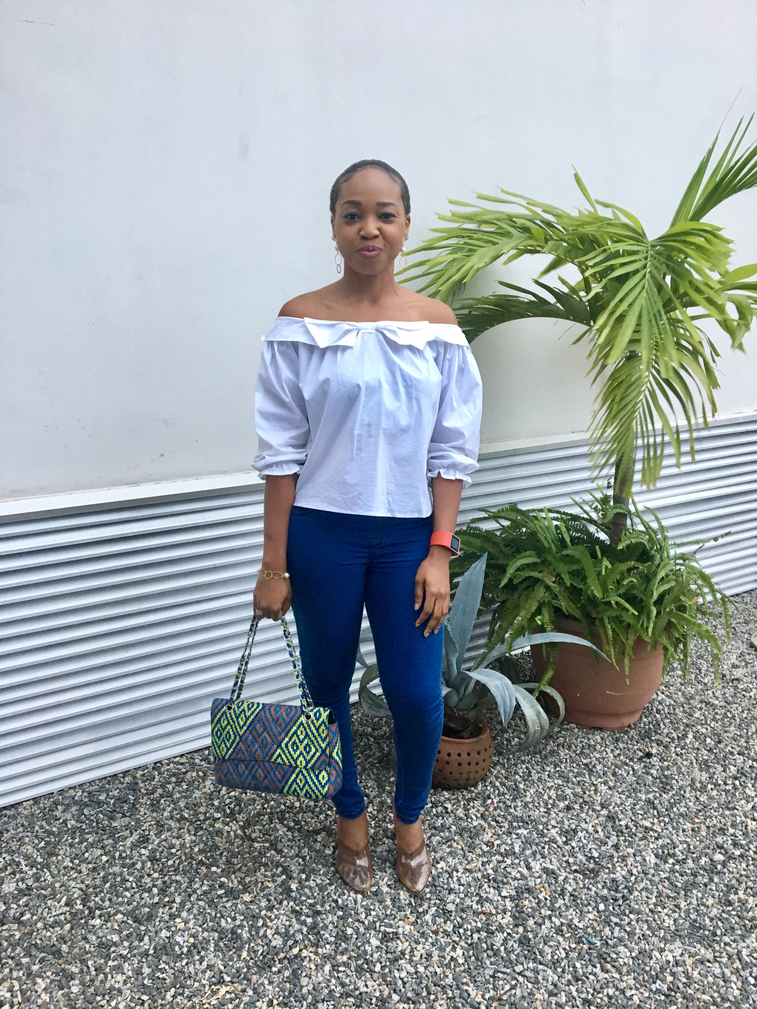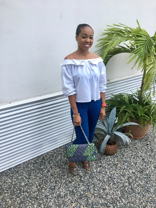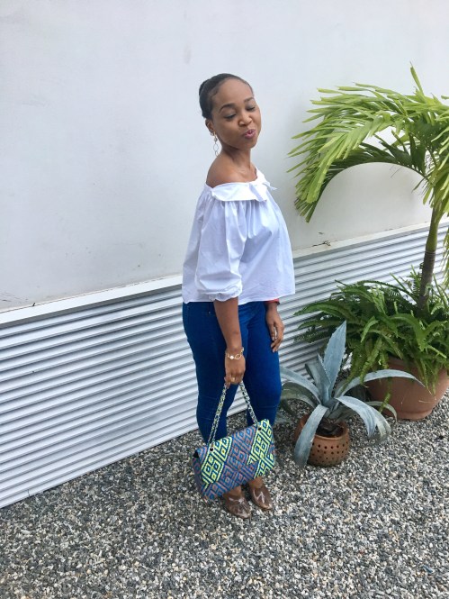 I paired it with a bright blue denim pants, transparent mules and my mostly blue ankara purse. I figured pairing it with blue will make it pop more and I was right. I’m so proud of my styling game now because I keep getting better. This look made me see how cute the top really is and now I love it so much.