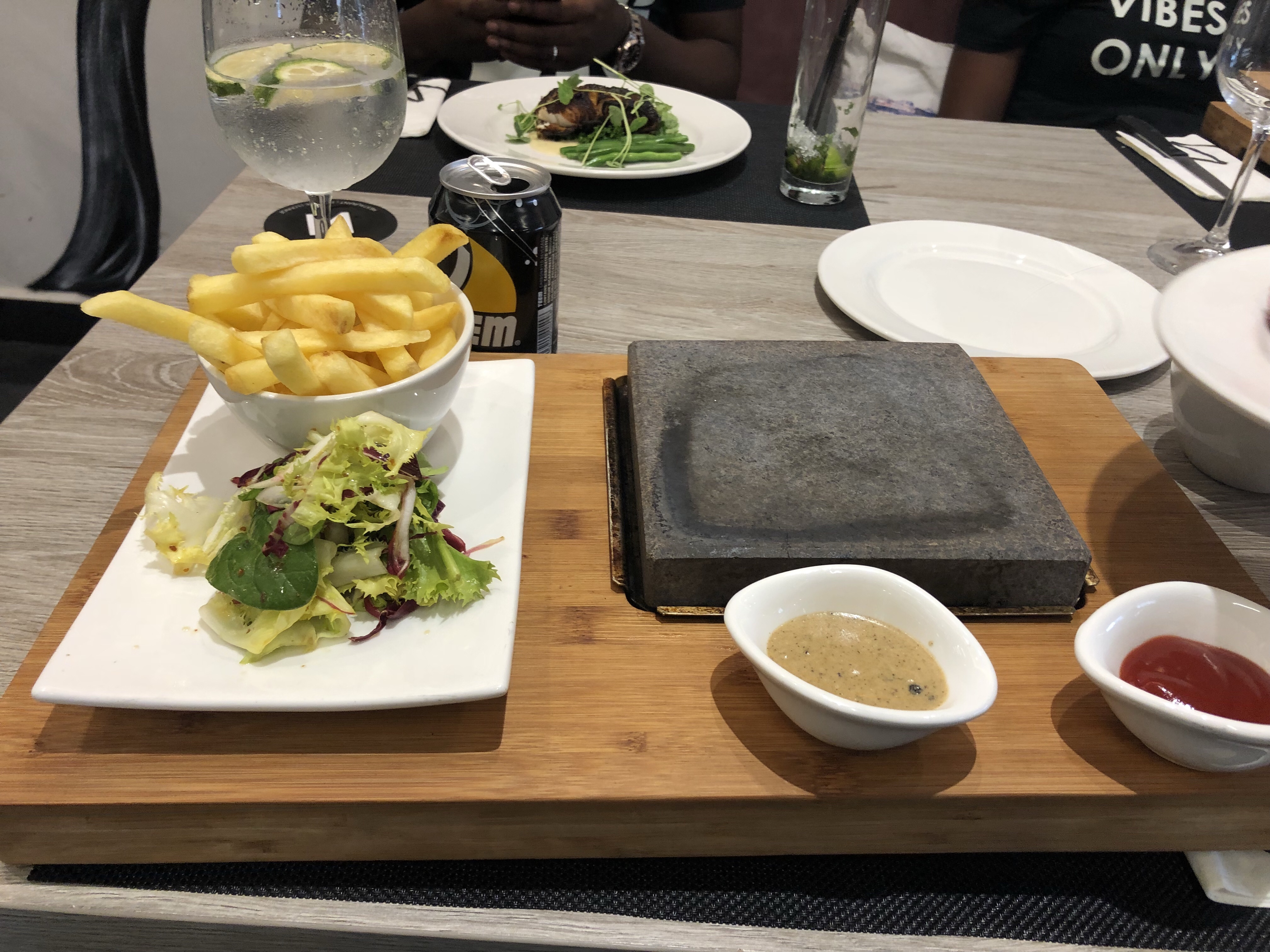Cooking our steak was the most interesting part of my lunch. The fact that I could cook my steak to my desire was very welcoming. I like my steak well done and most chefs don’t get well done right. The waitress helped me initially but I ended up doing it myself afterwards. This idea of using steak stones would definitely attract Nigerians for sure.