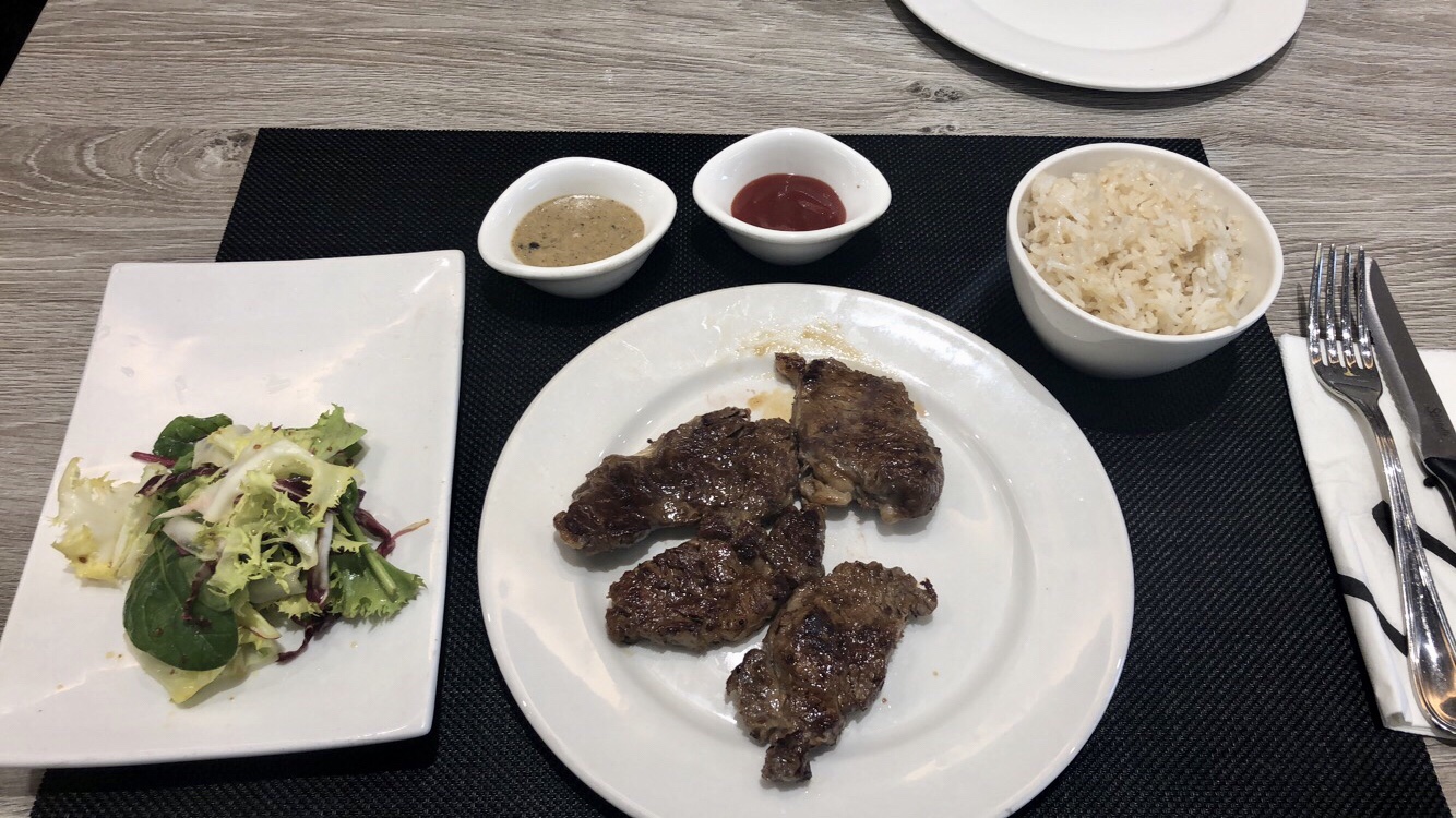 The customers on the table to our right were cooking their steak themselves and we watched them cook their lunch. It looked interesting to the extent that another customer took a photo of their lunch and I thought to try cooking my steak as well.