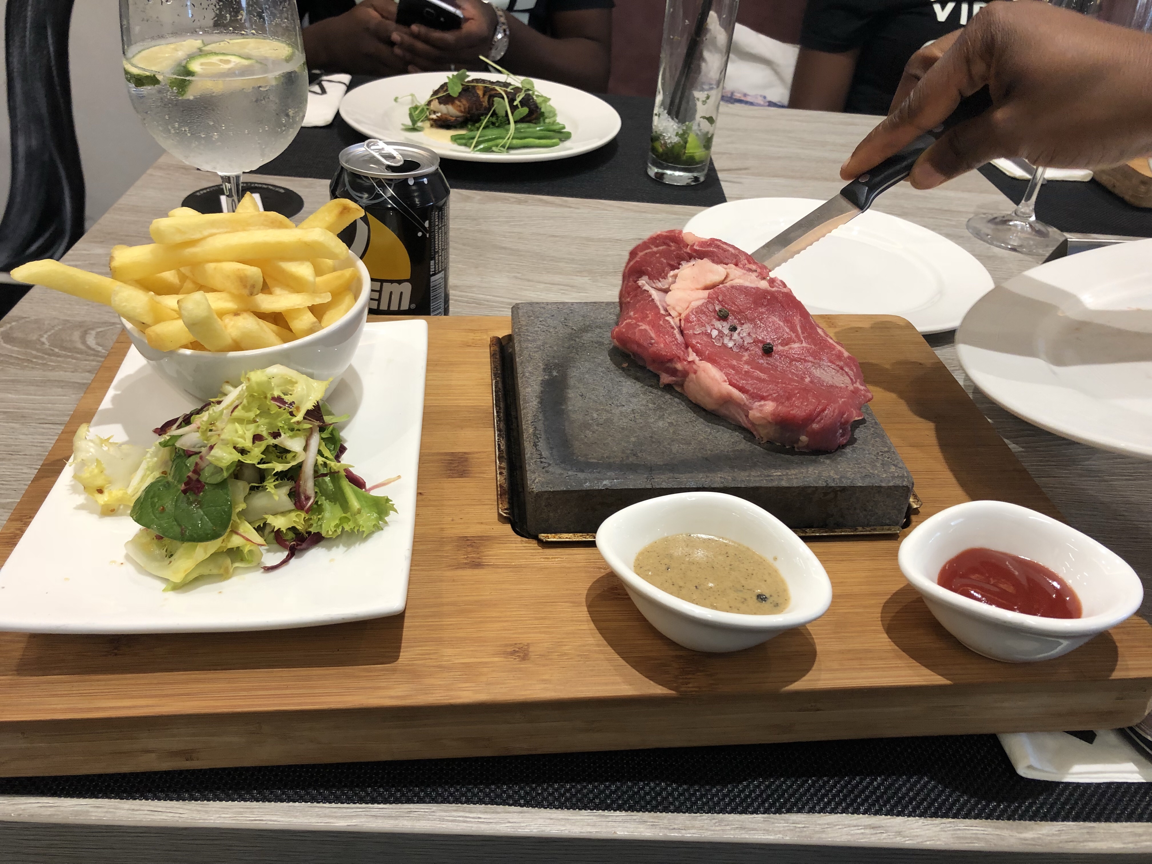 Cooking our steak was the most interesting part of my lunch. The fact that I could cook my steak to my desire was very welcoming. I like my steak well done and most chefs don’t get well done right. The waitress helped me initially but I ended up doing it myself afterwards. This idea of using steak stones would definitely attract Nigerians for sure.
