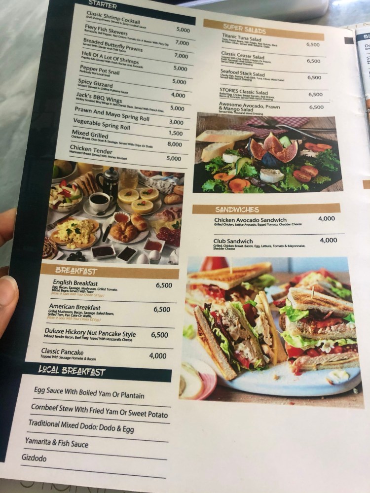 I found the menu to be very basic and safe, which is always better than listing meals that won’t come out great. It had a mix of local and intercontinental dishes in every meal category so there’s something for everyone.