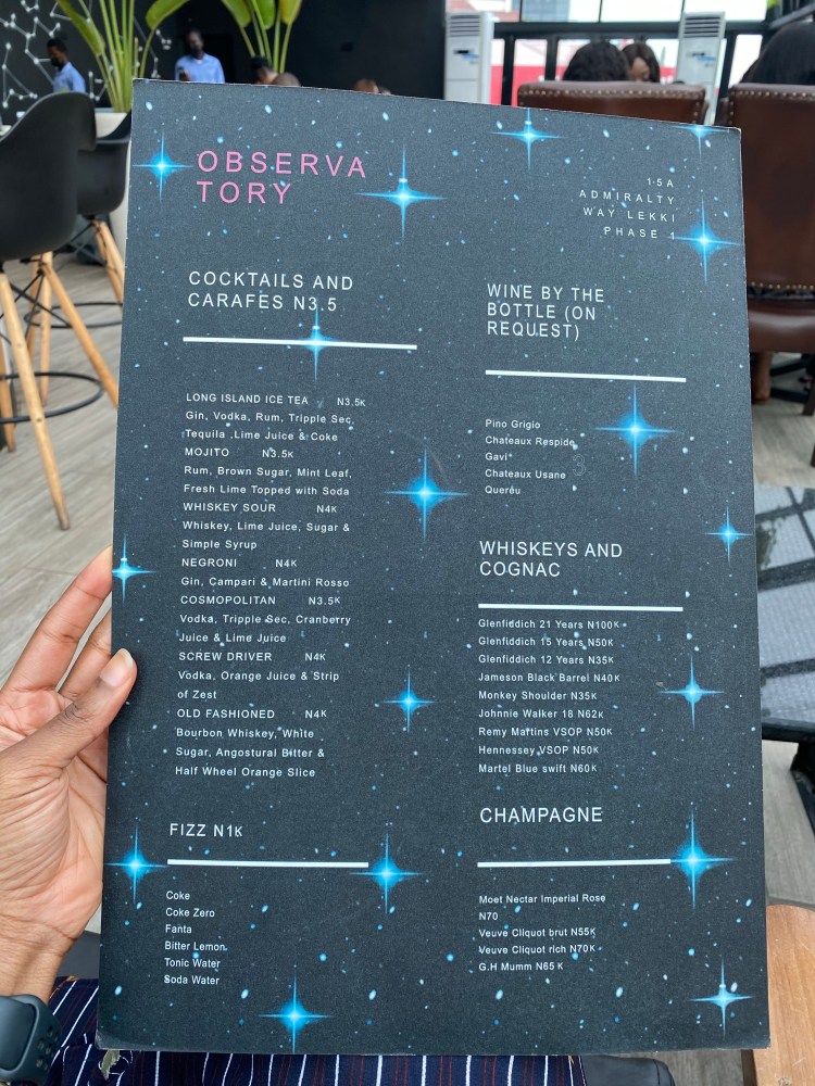 The Observatory will be a good choice if you’re looking for a classy and chilled dining experience in Lagos. If you love astrology, you’ll love the space too. I especially loved the vibes of the restaurant, and I’d easily recommend it to anyone looking to go out to eat with their family, friends, or on a date.