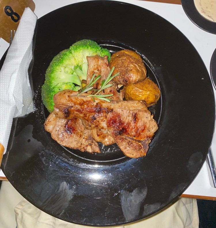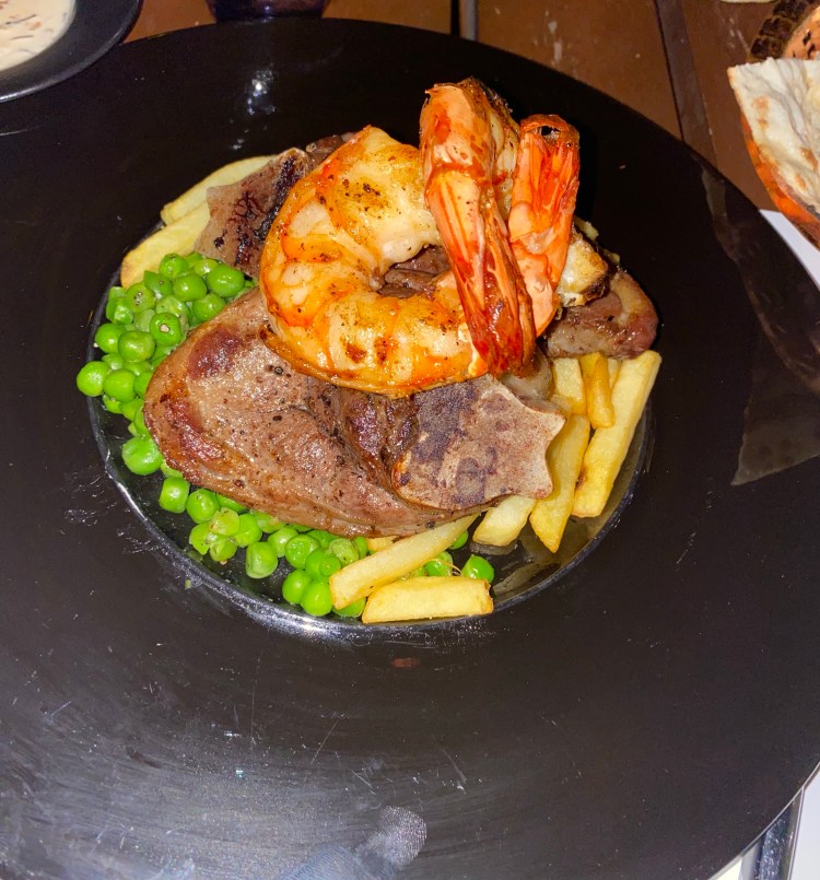 The naans and curry came first, and everyone dug in. We all ate my meal together before the other mains were served. Dee and Luki’s meals were served in a different fancy plate and were even covered until they got to them. So much paparazzi. I tried the steak and thought it was decent. Dee and Luki packed most of their food to go.