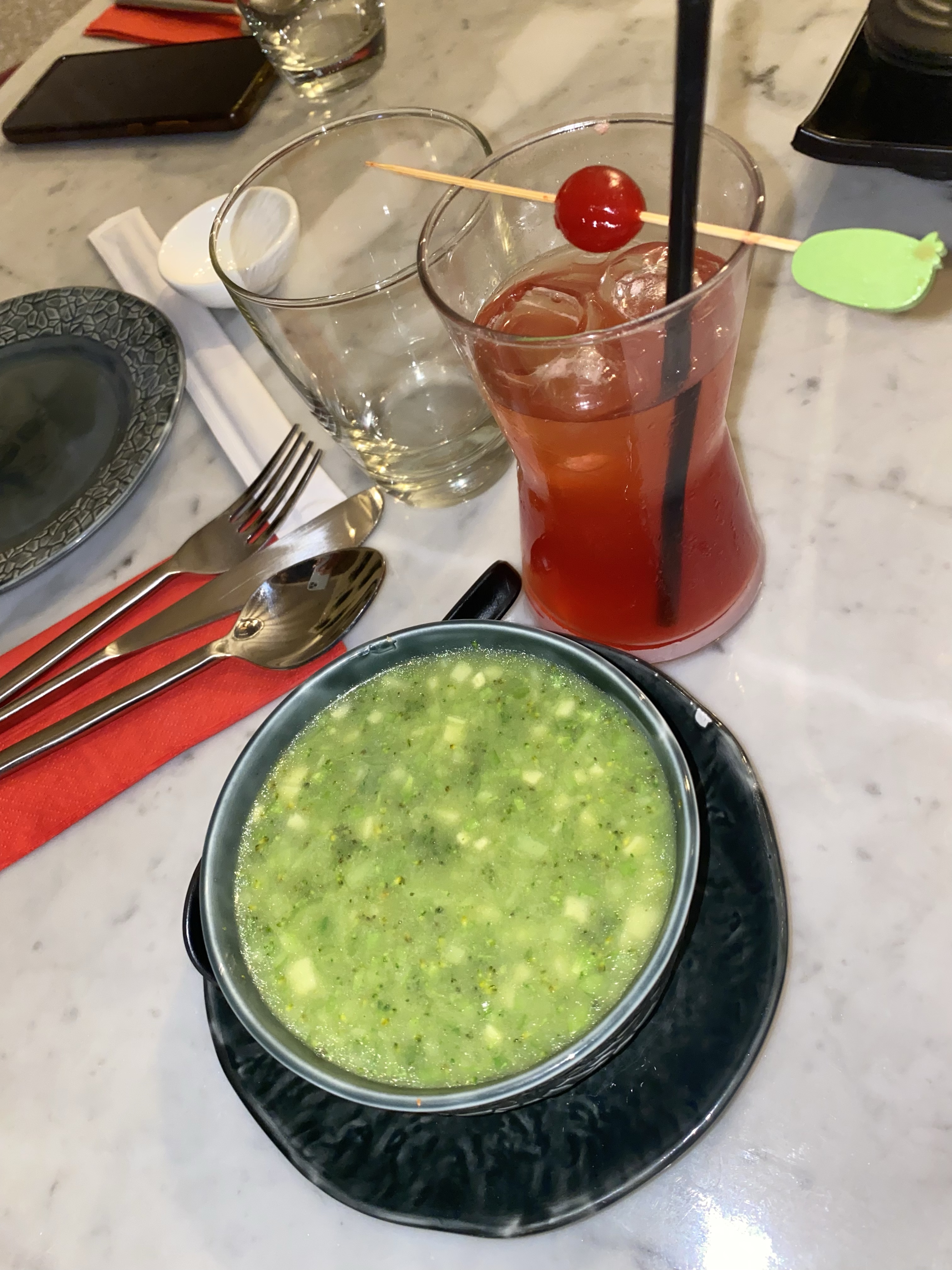 Though the restaurant is on a popular road in VI, it’s easy to drive past it because there’s no sign outside, and the restaurant’s building is all the way behind. We had to call, and someone came out to wait by the gate to get us in. Parking is also a hassle. I think it’s best to park outside on the road. However, the service was decent, and our waitress was helpful with our meal choices. I remember her telling me that the initial salad I ordered wasn’t “our regular salad”, and she suggested something else. She also asked if we wanted eggs in our cocktails, and we immediately said no. The restaurant wasn’t full, but it was busy for a new space. We didn’t have to wait forever for our meals to be served and neither were they served cold or tasteless. We almost didn’t stay, but I’m glad we did because it wasn’t a bad experience.