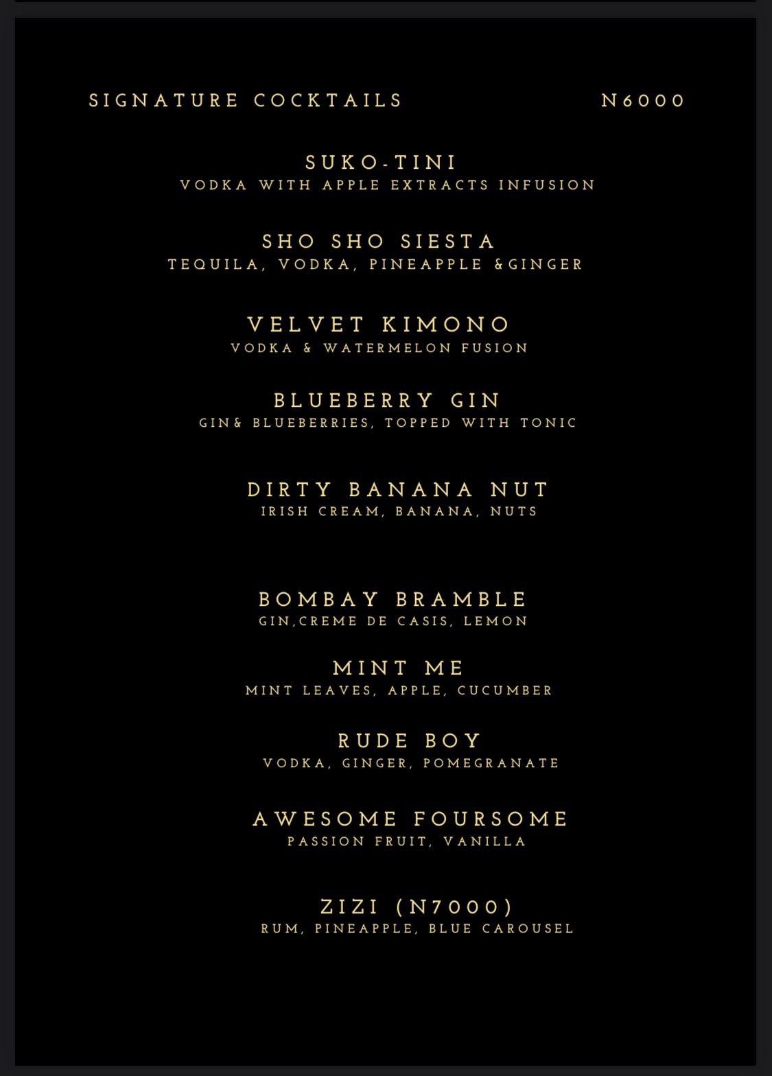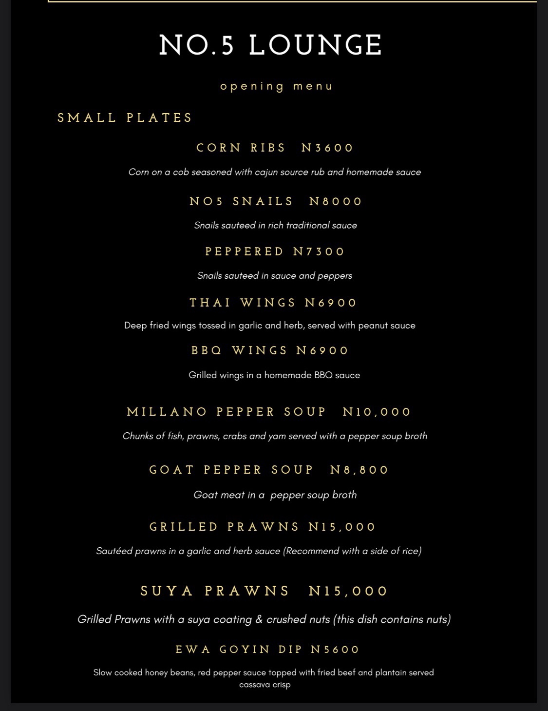 Though we sat in Cafe Mesi because the lounge wasn’t yet open for business when we arrived, we were served from the lounge’s menu. The food menu for No5 Lounge is categorized into five sections with a combination of local and international meals to choose from. I liked the cocktails menu because it had a selection of signature and classic cocktails.