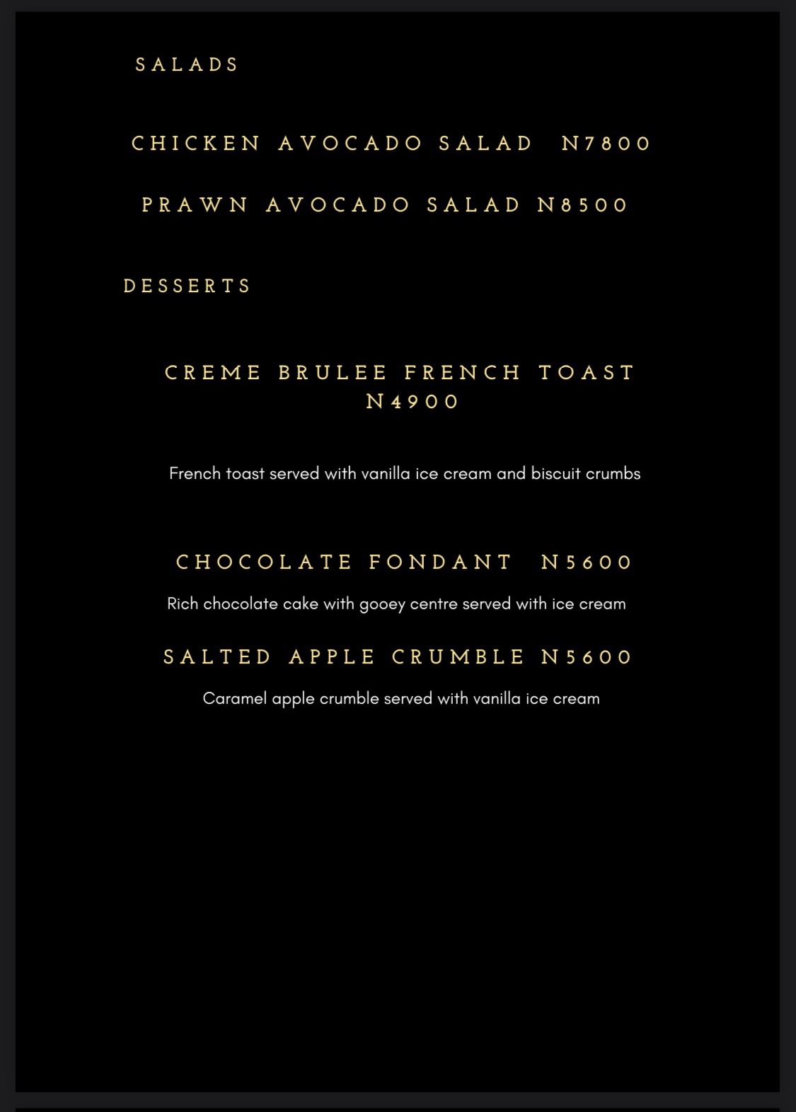 Our total bill was N35,900 (which included take away pack of N500). There were no additional charges.