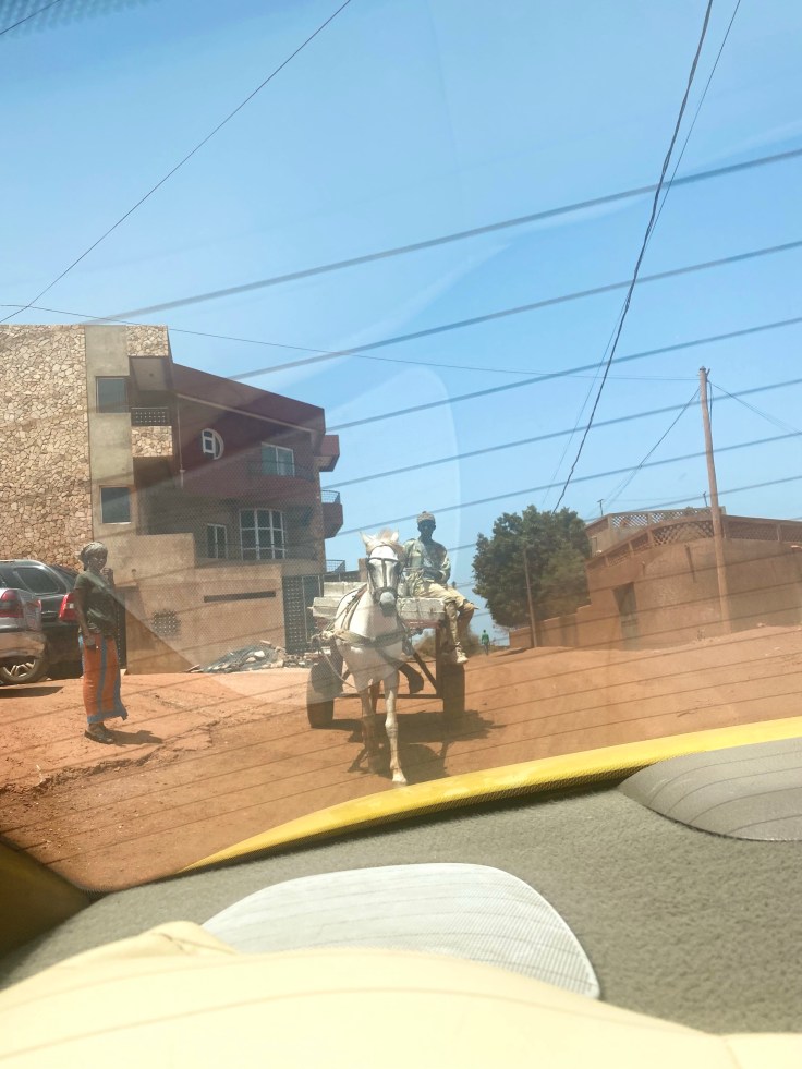 I was surprised to see a horse and cart behind it. Later, I realized that this was a regular thing because they move along freely like other vehicles on the roads. The horses and donkeys carry everything, including building materials, groceries, supplies, veggies, etc.