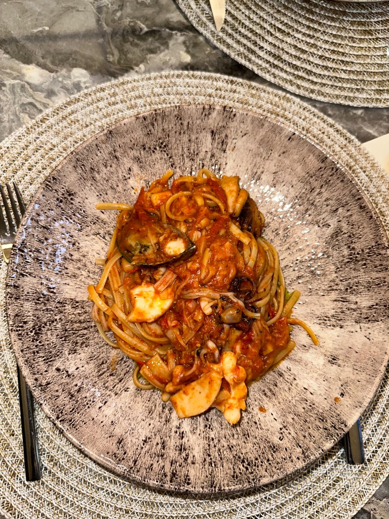 The seafood linguine looked scary when it arrived, and my sister was worried about having a bite. The presentation was poor, and the taste wasn’t special either. She said she wanted it spicy, but they must have poured raw pepper into it because she could barely eat it.