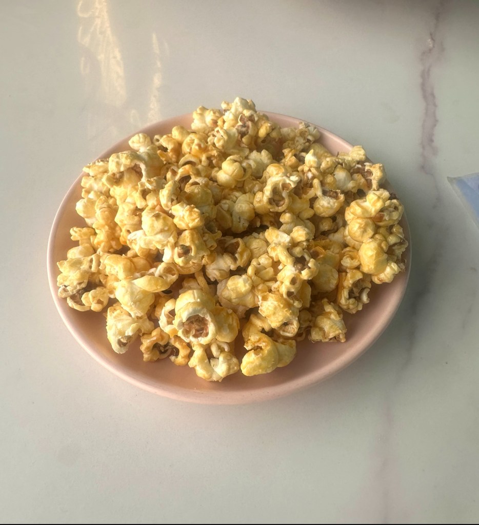 We stared at the food menu forever because we weren’t sure what to order. I initially wanted something sweet, like waffles or pancakes with toppings, but then I became undecided. While we were deciding, we were served complimentary popcorn, which was so good (popcorn lover here).