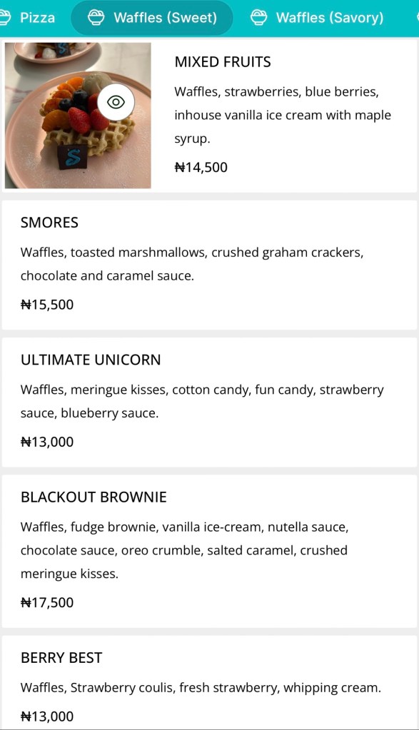 We were ushered into the space and taken to all floors to decide where to sit. For some reason, the power kept going off and on, and there were moments when the diner was hot. Also, though the space is beautiful, there’s no good natural lighting for pictures. I edited most of the pictures here. The wait time for everything we ordered was long though the diner wasn’t busy as only another table was occupied besides ours. Our waiter was courteous and apologized for the delay when we complained. Overall, we had a good time, and I’d like to go back to try something sweet and calorie-packed. Parking is limited and may be a struggle when the diner is busy.