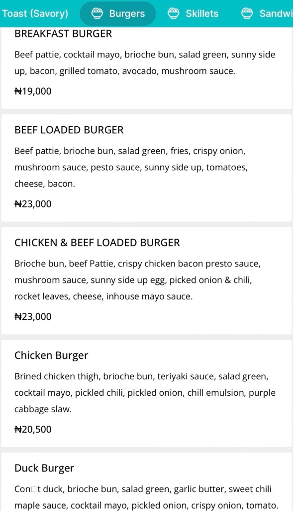 Chicken and Beef Loaded Burger ~ 20,000 (it’s now 23,000)