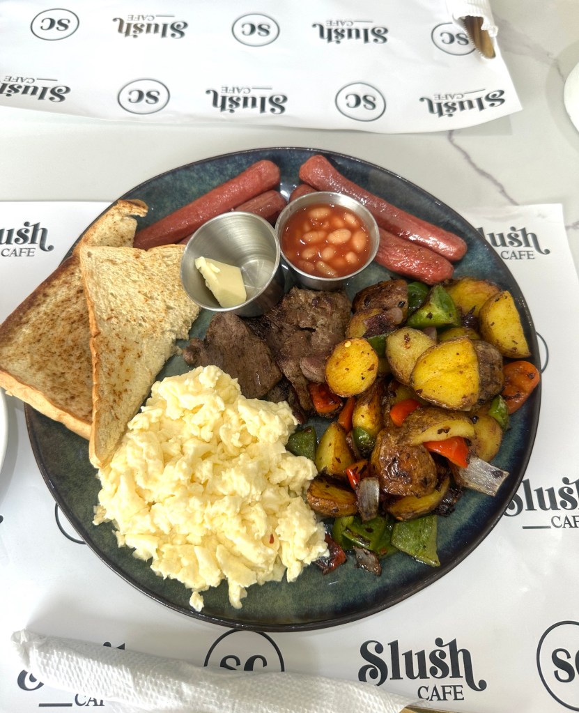 For food, we both wanted to try their breakfast meals, so we limited our choices to that section only. I chose Slush Overload Breakfast, and TJ chose Brunch in East London. We asked for the bacon to be replaced with extra sausages as we both don’t eat pork.