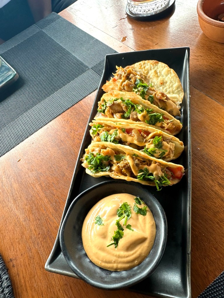 For drinks, Laitan chose a cocktail; Star Boy, while I had my go-to soda water with lemon juice. For food, we chose Spicy Turkey Tacos to start, and while Laitan chose the Grilled Jerk Chicken meal, I chose the Gourmet Chicken Sandwich.