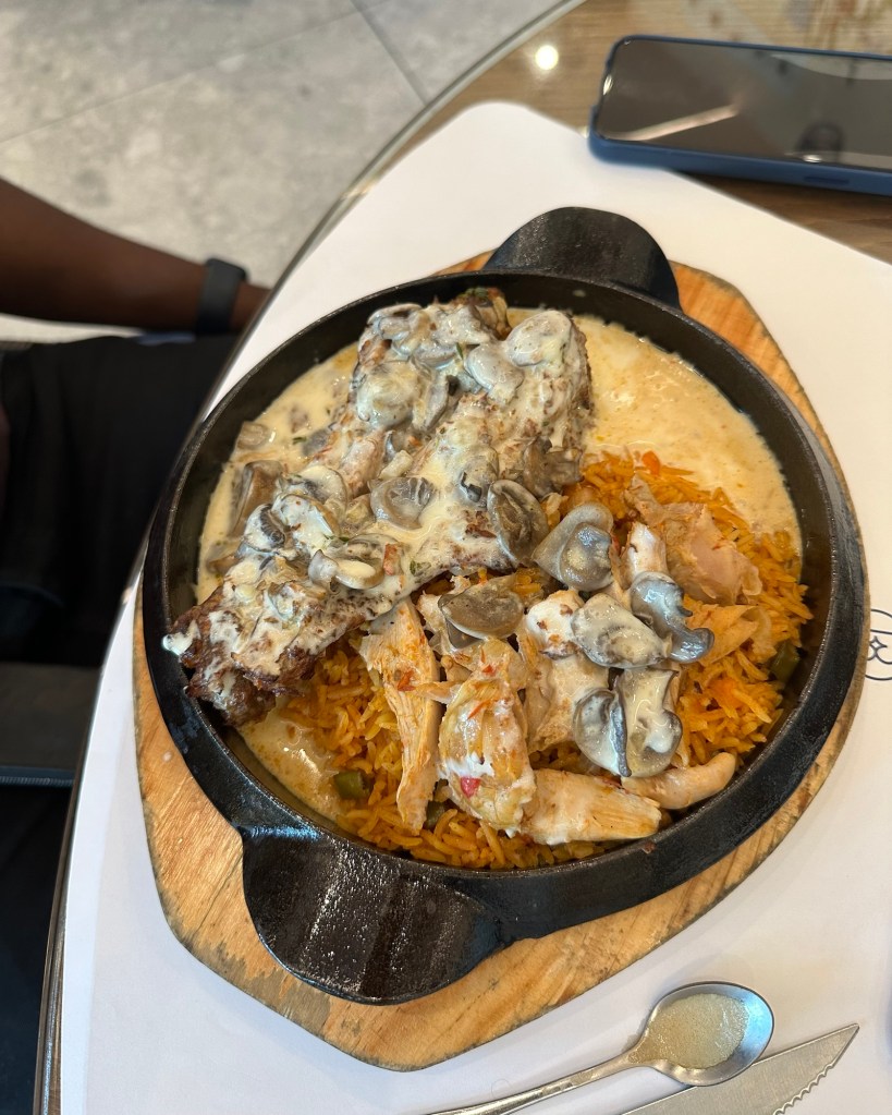 Olumide mentioned that his chicken wasn’t as tasty as he had hoped despite looking appealing. However, he found the pancakes delicious and thought the addition of plantain was an interesting touch. On the other hand, Osoba enjoyed the turkey and potatoes but regretted switching from fried rice to jollof rice, believing that fried rice might have been a better choice. He also noted that the food looked better than it tasted, which left him feeling a bit disappointed. I was offered a forkful of turkey with sauce as proof and agreed with his assessment.