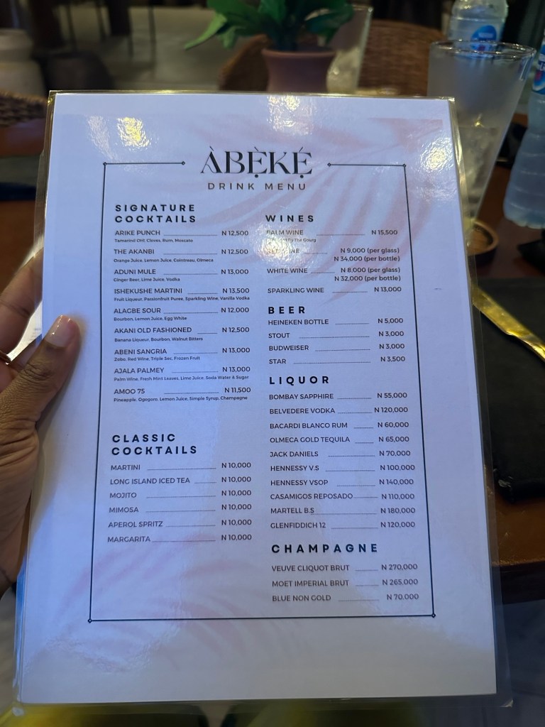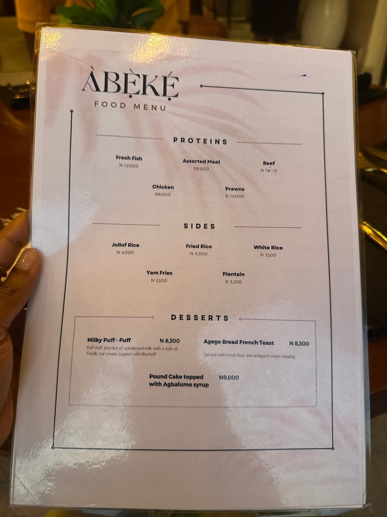 Abeke Rooftop Restaurant is located in Lekki Phase 1, Lagos, and specializes in Nigerian fusion cuisine, with an emphasis on authentic Yoruba dishes. The restaurant began operations in September 2024, but I only recently visited with my friend Simi for iftar (the break of the Ramadan fast) in March 2025. Here’s a summary of our experience at Abeke.
