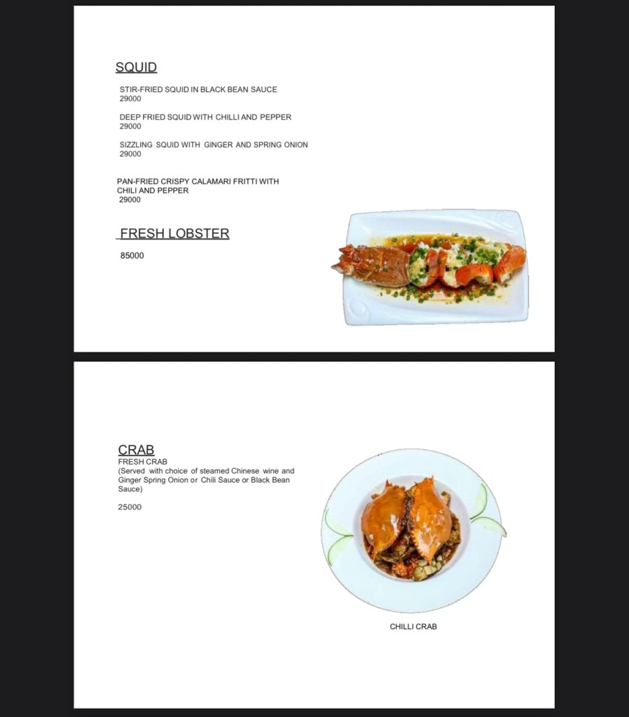 The food menu is extensive — 17 categories with at least two dishes per category. I couldn’t capture everything, but trust me, the options go on and on. There’s also a separate dim sum menu packed with choices (yum!).