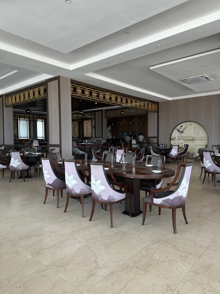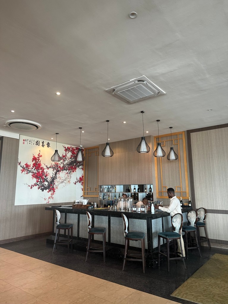 Chai Tang sits on the top floor of the Twin Waters building, offering a sweeping view of Victoria Island, Lekki Phase 1 and the ocean. The restaurant is massive — there are seats for days. Indoors, it’s a formal dining setup with polished elegance, while the outdoor area feels more relaxed and casual, perfect for catching the breeze.